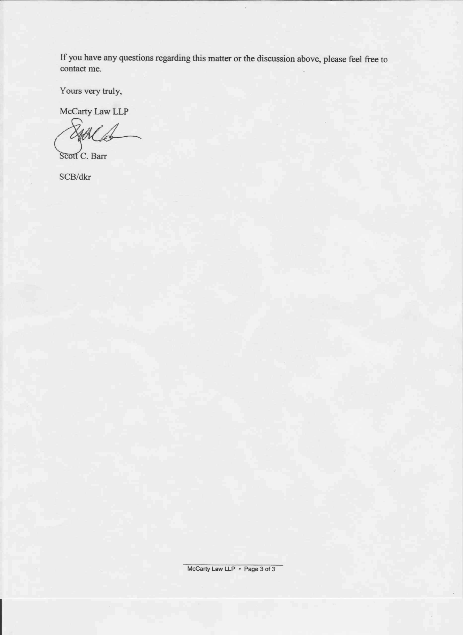 Correspondence from attorney