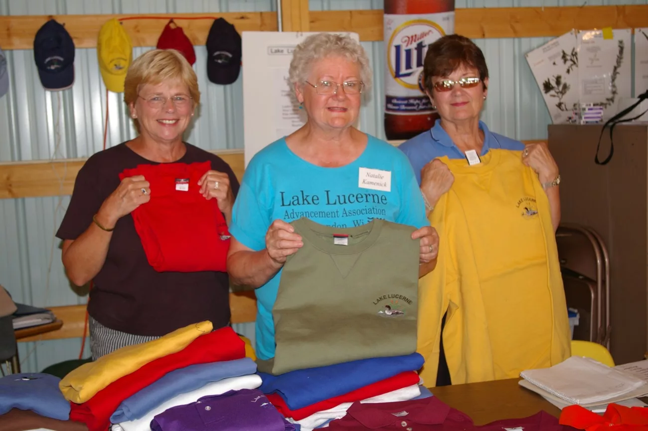 Selling Lake Lucerne Clothing at Fun Days: Jerri Brackob, Natalie Kamenick, Mary Meier